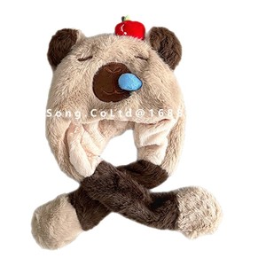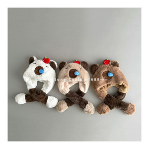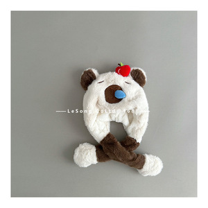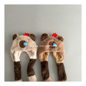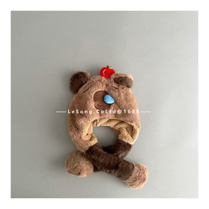 日系可爱卡皮巴拉儿童款毛绒雷锋帽女秋冬季加厚保暖护耳帽套头帽