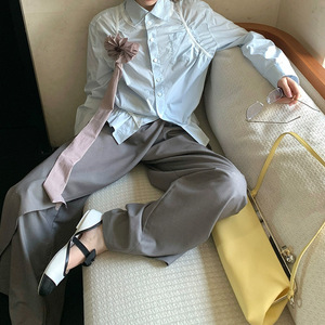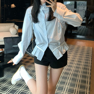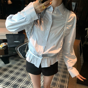 槿一褶皱衬衫女秋季新款设计感小众拼接衬衣休闲宽松长袖上衣2025
