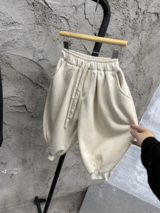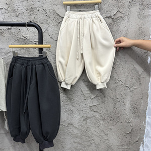 韩国冬季童装儿童复合一体绒宽松束脚裤男童女童纯色靴裤加厚长裤