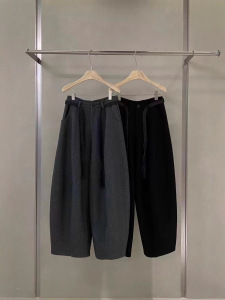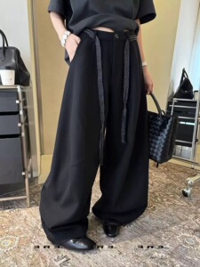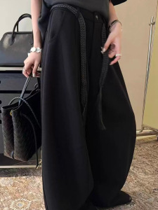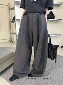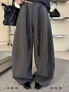 灰色呢西装阔腿裤女2025秋季新款高腰直筒拖地弯刀休闲裤