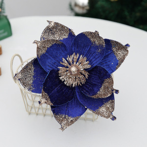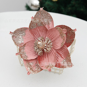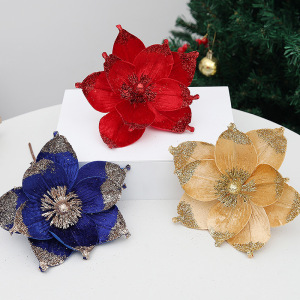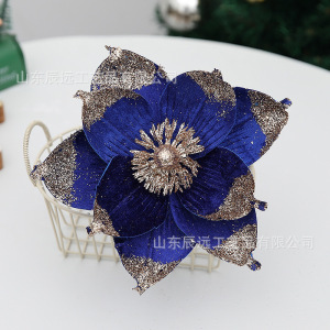 仿真花圣诞树家居装饰热卖圣诞花 金粉亮片9叶花瓣节日派对装饰品
