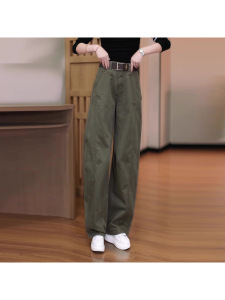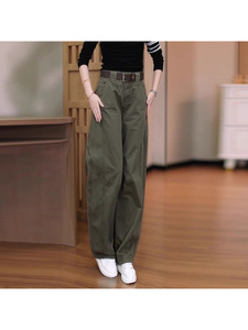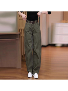 休闲阔腿工装裤女2025年春秋季高腰宽松显瘦窄版垂感气质直筒裤子