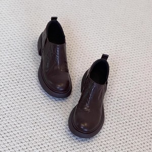 羊皮版~2025新款百搭粗跟厚底小皮鞋女复古真皮圆头一脚蹬乐福鞋