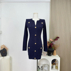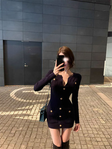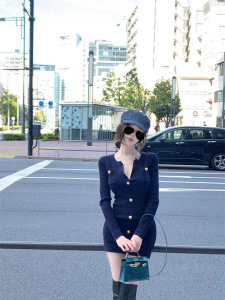 Chill巧儿【智性巴尔曼】小香风千金感修身收腰针织长袖连衣裙女