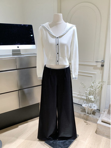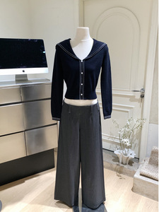 槿一 糯糯黑色/灰色西裤秋季新款阔腿休闲低腰显瘦拖地长裤女通勤