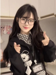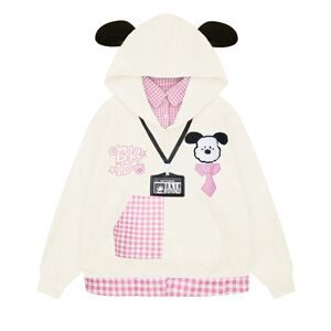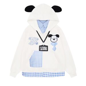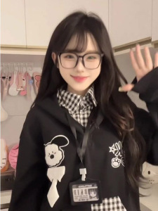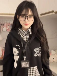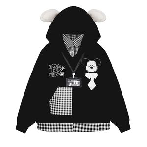 美式复古小狗刺绣假两件挂牌连帽卫衣女秋季宽松上衣