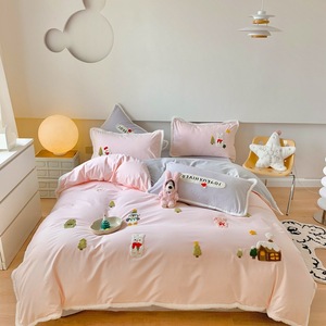 秋冬少女心圣诞树毛巾绣加厚全棉磨毛四件套纯棉床单被套床品粉色
