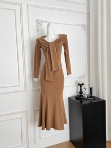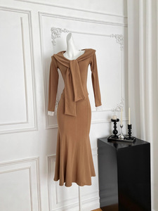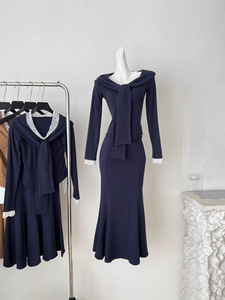 『欣幸』凌恣松间语'法式蕾丝拼接上衣秋高腰鱼尾半身裙针织套装