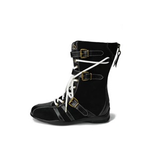 牛皮版~葡萄ma同款内增高4cm马丁靴女皮带扣绑带拳击靴子中筒短靴