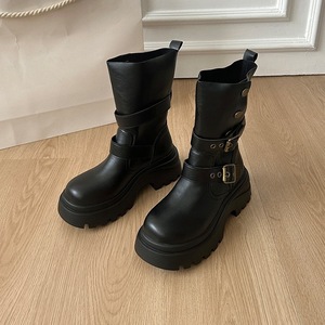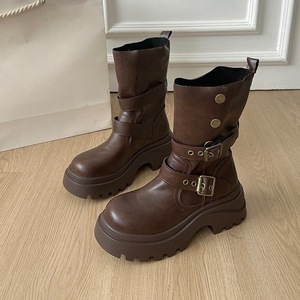 英伦风休闲增高马丁靴女2025秋冬新款复古两穿中筒厚底翻折时装靴