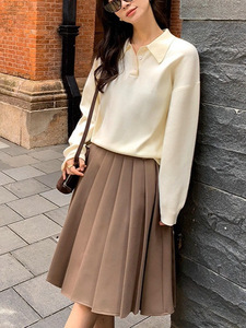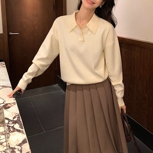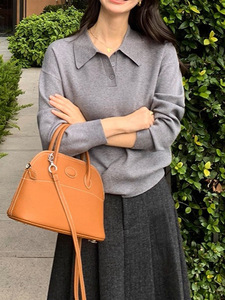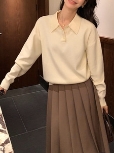 慵懒基因 polo领套头毛衣女春秋宽松慵懒长袖针织衫上衣