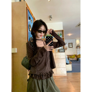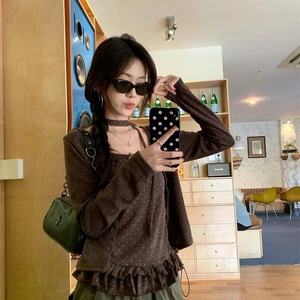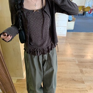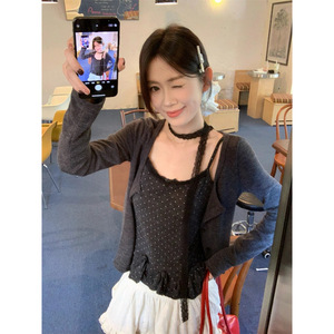 【双纱绒面布+花边染色】新款两件套波点荷叶边吊带背心套装