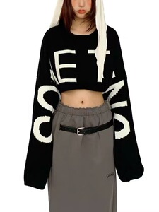 “Nomad"超大袖子印花休闲时尚短款毛衣