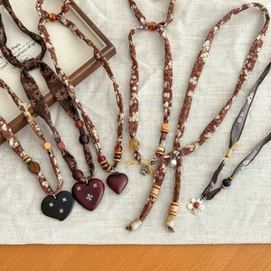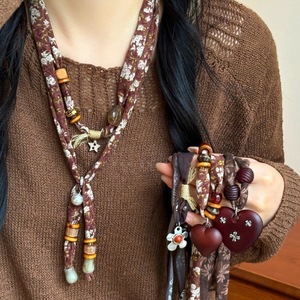 韩系早秋长条腰果花丝巾项链女复古氛围感抽拉配饰独特百搭毛衣链