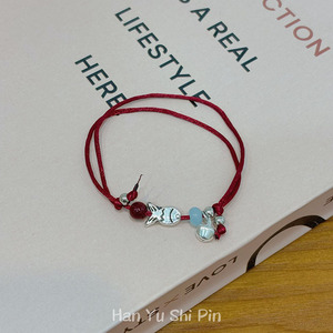 新中式手工编织铃铛小鱼情侣手链时尚简约可调节学生手绳送闺蜜