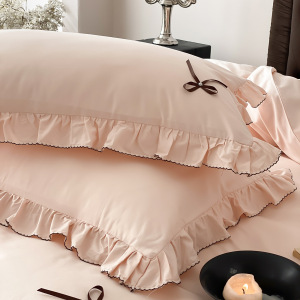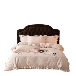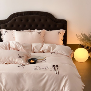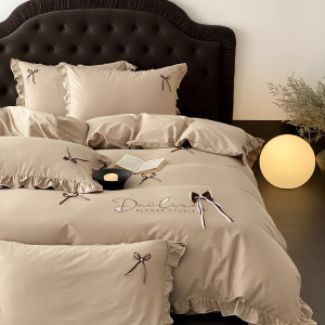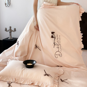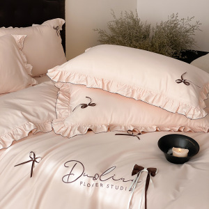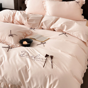 韩式少女心全棉水洗棉四件套床笠花边蝴蝶结四季款纯棉床单被套
