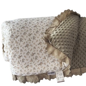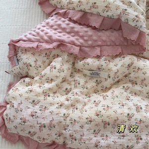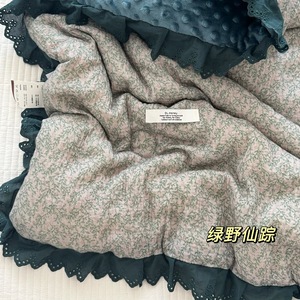 法式轻奢复古风一面全棉双层皱皱纱一面200g安抚豆豆绒双人秋冬被