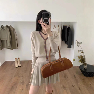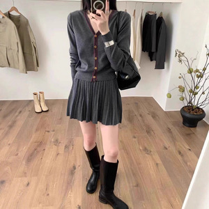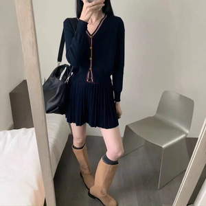 可补DA641撞色边减龄毛衣半裙套装衣长55裙40-仅供货经销商不退换