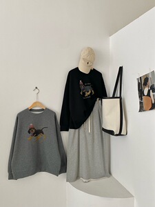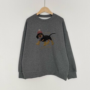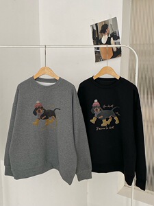 2025早秋新款韩版显瘦百搭圆领卡通腊肠狗印花长袖卫衣