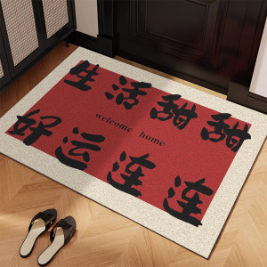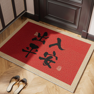 新中式红色入户门地垫刮泥蹭土易打理丝圈地垫家用玄关装饰地垫