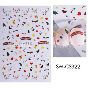 新款ins圣诞节美甲贴纸 跨境圣诞小卡通姜饼人圣诞树美甲背胶贴花