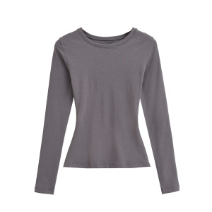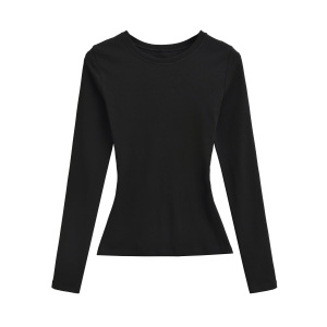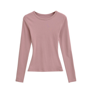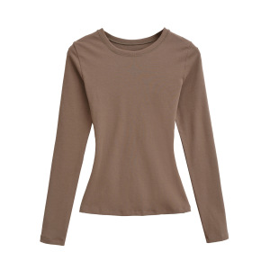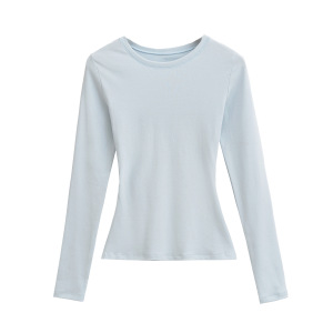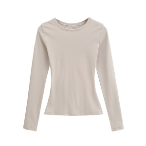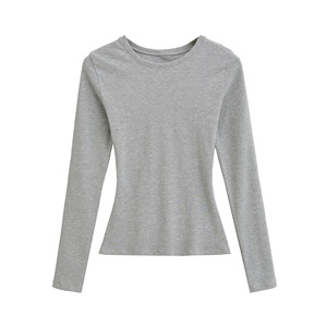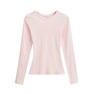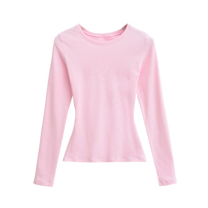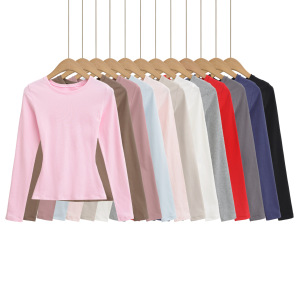 辣妹基础款百搭正肩长袖T恤女2025小圆领修身显瘦沙漏腰内搭打底