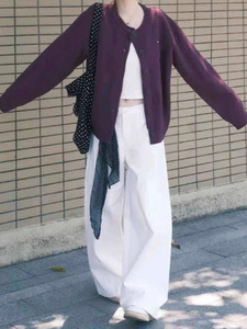 早秋穿搭一整套2025韩系减龄长裤子学院风独特漂亮开衫上衣女两件