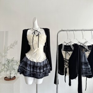 2025实拍秋季新款 秋季纯欲甜辣风挂脖吊带开衫半裙
