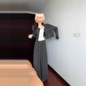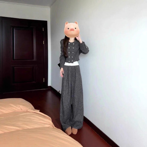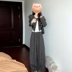 韩系慵懒松弛感早秋季穿搭一整套装裤子女2025新款初秋装灰色外套