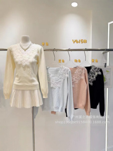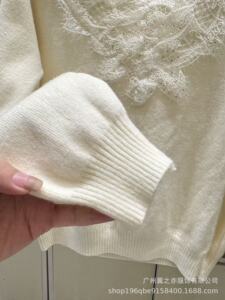 蕾丝拼接V领针织衫女2025秋季新款法式温柔减龄韩系打底衫上衣