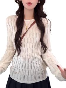 2025秋冬新款慵懒风气质镂空长袖针织衫女装休闲百搭漂亮毛衣上衣