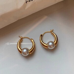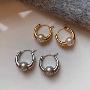 灰色澳白色珍珠耳环女轻奢小众高级感气质2025新款耳饰耳圈圈耳扣