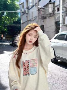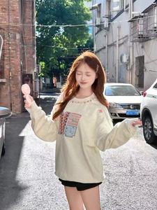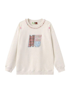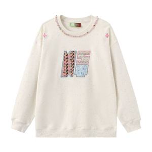 国潮牌刺绣宝石织带彩点百搭加绒加厚圆领卫衣女2025秋冬可爱上衣
