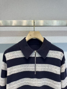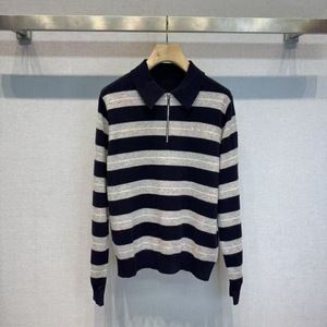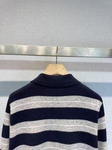 南油M家女装25秋季新款学院风翻领字母提花长袖针织撞色条纹上衣
