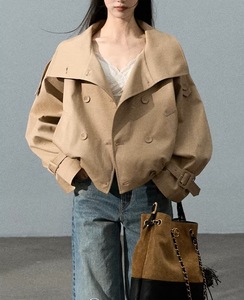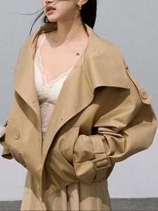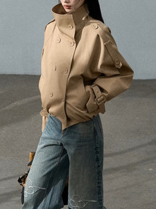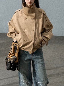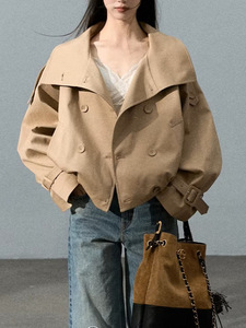 OAKMO/莱赛尔棉双排扣大廓形短款风衣外套夹克秋季穿搭立领大衣