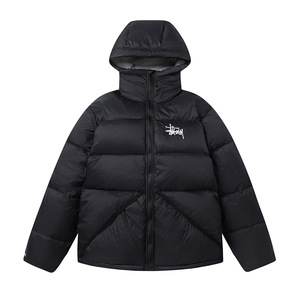 STU新款经典纯色百搭刺绣拉链连帽短款白鸭绒羽绒服男女同款