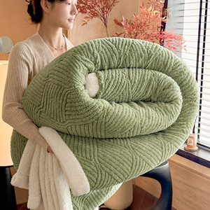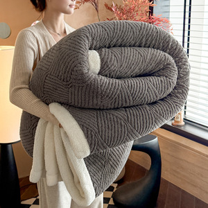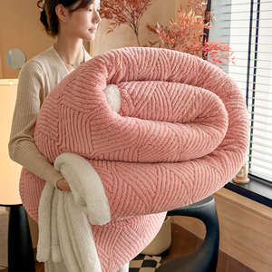 加厚塔芙绒提花双层毛毯冬季盖毯珊瑚绒被子午睡办公室沙发披肩毯
