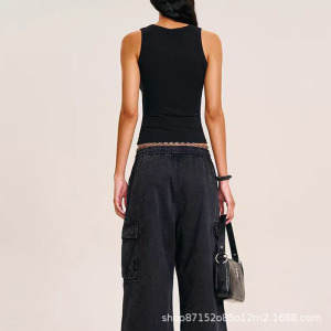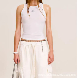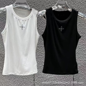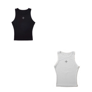 SMFK十字印章醋酸紧身运动背心经典黑白两色外穿短上衣