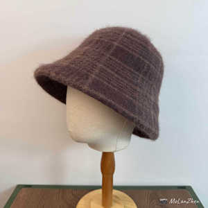 高品质日系格纹羊毛渔夫帽子女秋冬复古时尚盆帽保暖显脸小水桶帽