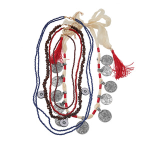 ZA2025秋款米珠多层编织流苏钱币吊坠项链波西米亚风女叠戴毛衣链