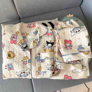 空气夹棉睡衣女秋冬季夹层加厚长袖可爱卡皮巴拉学生家居服春秋款