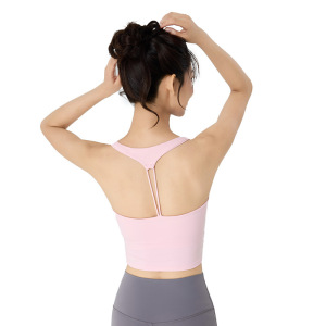 跨境瑜伽服背心上衣女带胸垫镂空美背健身服背心腰部抽褶运动背心