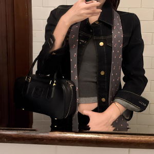 【千禧】复古修身原牛软牛仔外套女2025秋季新款黑色短款夹克上衣