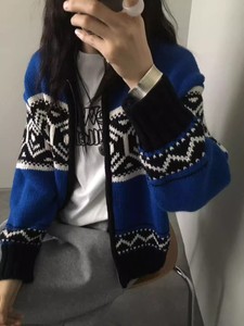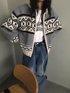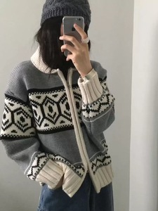 秋冬新款北欧费尔岛氛围感复古提花双拉链毛衣外套圆领开衫毛衣女