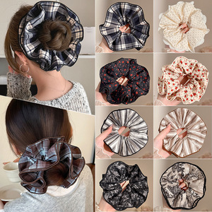 秋冬复古格纹大肠发圈女韩系高级感扎头绳氛围感丸子头低马尾发绳
