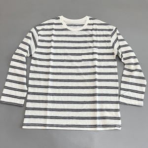 麻棉手感条纹长袖T恤圆领女士宽松休闲风口袋百搭显瘦打底衫上衣
