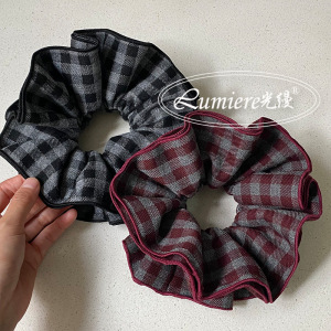 日韩ins复古浆果红格纹毛呢面料大肠发圈甜美温柔气质公主头绳女