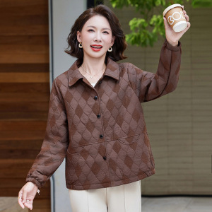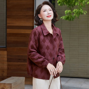 新款妈妈装中老年女装外套时尚翻领中年装开衫秋季洋气短款女款秋