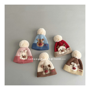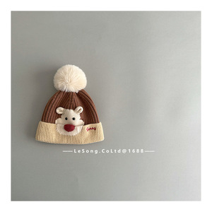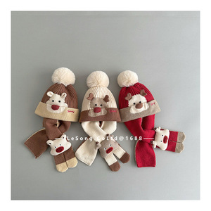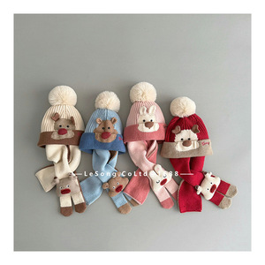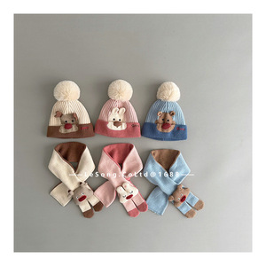 2025儿童帽子围巾两件套秋冬款可爱萌阿卡通保暖婴儿针织毛线帽