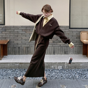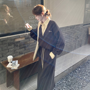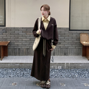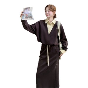 2025年秋季新款衬衫拼接假两件卫衣宽松显瘦气质休闲半身裙两件套